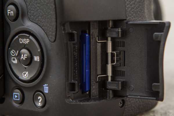 Задняя панель работает безотказно. На джойстике расположены ярлычки для различных функций, наряду с центральной кнопкой автофокуса, которая служит для определения точки (или точек) фокуса. Кнопка «Функция» расположена над джойстиком, сделана удобней, чем дальняя кнопка «Меню» (находится под переключателем режимов, в левой части камеры), и охватывает все основные настройки, которые нужно регулировать на лету. Над шероховатым углублением для большого пальца расположены кнопки быстрого вызова для видеозаписи, блокировки и компенсации экспозиции, каждую из которых очень легко распознать на ощупь. Под джойстиком расположены две кнопки: кнопка воспроизведения и кнопка вызова встроенной справки, а в режиме просмотра «Удаление». Над видоискателем расположен датчик приближения, который отключает ЖК-экран при взгляде в видоискатель.