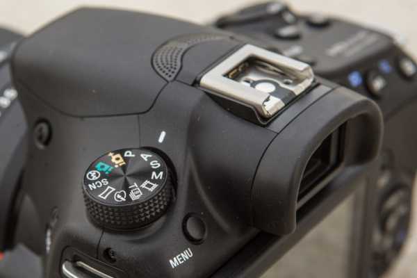 Sony − единственная компания, которая в своих бюджетных “зеркалках” размещает диск выбора режимов съемки слева от видоискателя. При этом справа освобождается достаточно много места, которое заполняется парой-тройкой маркетинговых надписей вместо того, чтобы разместить там несколько дополнительных кнопок (например, прямого доступа к режимам фокусировки). Это могло бы улучшить эргономику в целом и выделить SLT-A58 на фоне конкурентов.