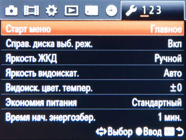 Меню фотокамеры Sony Alpha A58 Ксостоит из 7 сгруппированных разделов:
