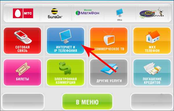 - Выбираете пункт меню «Оплатить услуги».