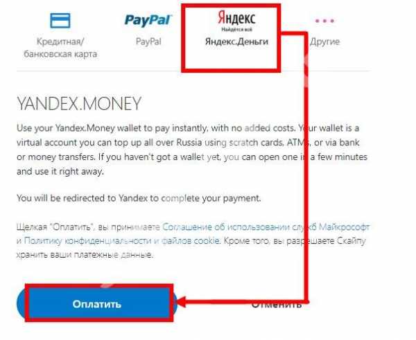 Если вы хотите оплатить Скайп через Яндекс деньги, сначала выберите этот способ в списке предложенных, после чего: