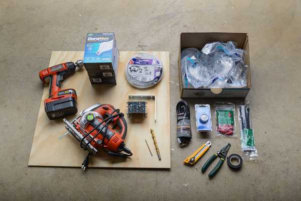 Для создания аксессуара фотографу понадобится найти дома или купить 3 метра бытового кабеля с сечение в 2 мм, 12 лампочек и ламповых потронов, фанера с размерами 61 х 61 см, желательно покупать ее потолще, чтобы конструкция была прочнее. Далее не забудьте о выключателе, шнуре питания, кабельной скрутке и стяжке, изоленте и, конечно, различных креплениях для фиксации осветителя на стойке. А чтобы собрать все эти детали вам все-таки придется превратиться немного в инженера и поработать с лобзиком, дрелью, отверткой, кусачками-стриппером, плоскогубцами, рулеткой, канцелярским ножом, карандашом и веревкой.