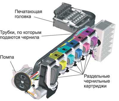 Схема устройства печатающего механизма фотопринтераПо сравнению с лазерными принтерами, струйные обеспечивают более высокое качество фотопечати, поэтому представляют большой интерес для любителей фотографии. Современные струйные принтеры могут печатать фотографии разного формата и на различных носителях, они прекрасно справляются с печатью как цветных фотографий, так и текста. А благодаря возможности установки на принтер системы непрерывной подачи чернил (СНПЧ) стоимость отпечатанных фотографий может резко снизиться.