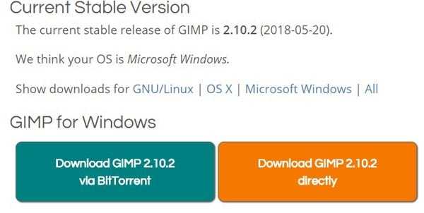 Программа распространяется на бесплатной основе. Чтобы загрузить софт достаточно перейти на сайт разработчиков www.gimp.org и нажать на соответствующую кнопку.