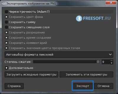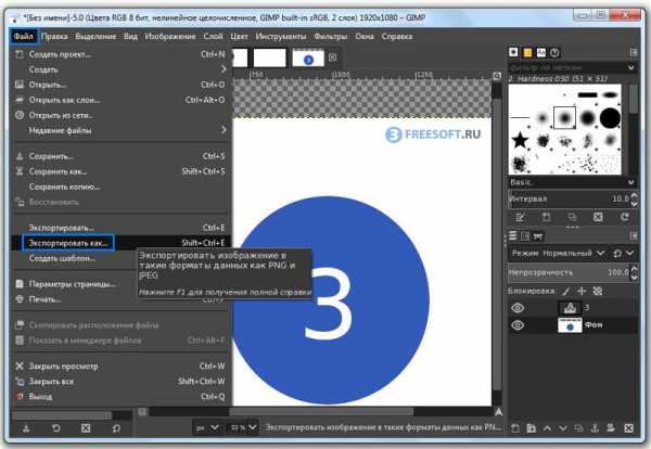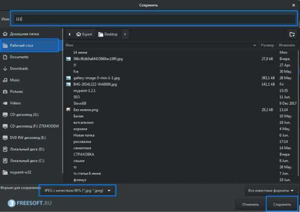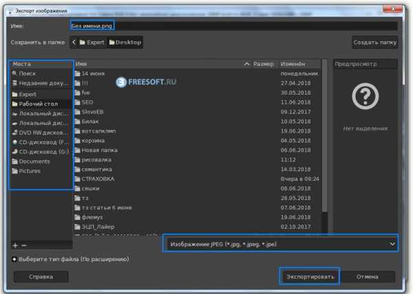 Далее вверху вводим название файла, в левой части выбираем место для сохранения, указываем формат изображения и нажимаем на кнопку «Экспортировать».