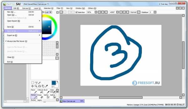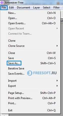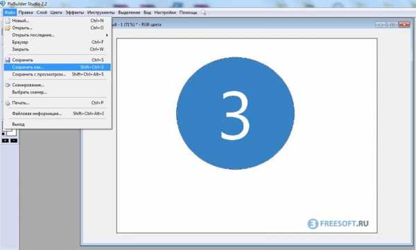 Согласитесь, интерфейс программы очень приятный, а самое главное логичный и понятный. Чтобы сохранить созданное изображение нужно открыть меню «Файл», кликнуть по пункту «Сохранить как…», а затем выбрать место для сохранения изображения на вашем компьютере.