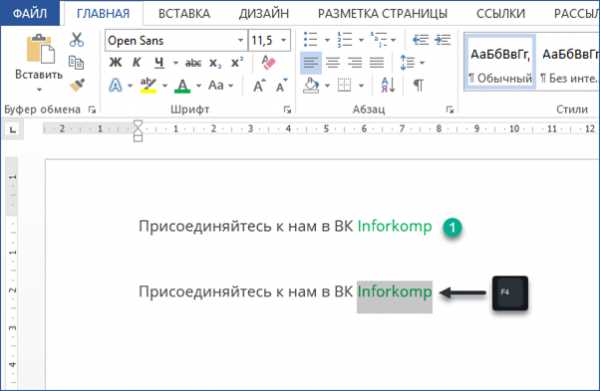 Повтор последнего выполненного действия в Word можно вызвать нажав на клавишу «F4».