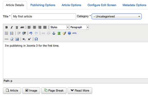 - Основной текст: Я публикуюсь в Joomla первый раз.