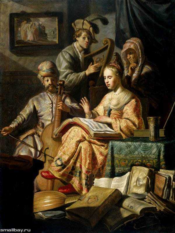 «Аллегория музыки» 1626 года — пример ластмановского влияния на юного Рембрандта.В Лейдене Рембрандт посещал латинскую школу при университете, но наибольший интерес проявлял к живописи. В 13 лет он был отдан учиться изобразительному искусству к лейденскому историческому живописцу Якобу ван Сваненбюрху, католику по вере. Рембрандтовские работы этого периода исследователями не выявлены, и вопрос о влиянии Сваненберха на становление его творческой манеры остаётся открытым: слишком мало известно сегодня об этом лейденском художнике.