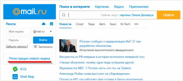 - Вверху страницы кликните по надписи Регистрация нового ящика