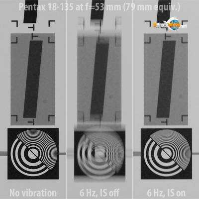 Ну и, наконец, стабилизатор Pentax показал лучший результат. Причем лучше не только других камер, но и лучше себя же при вдвое меньшем фокусном расстоянии. То есть, стабилизатор на сдвиге матрицы лучше скомпенсировал более сильное смазывание изображения. Хотя различия во всех случаях минимальны.