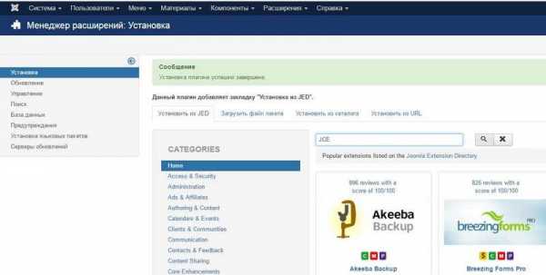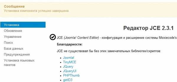 На этом процесс установки текстового редактора JCEна Ваш сайт завершен. Теперь осталось лишь настроить его.