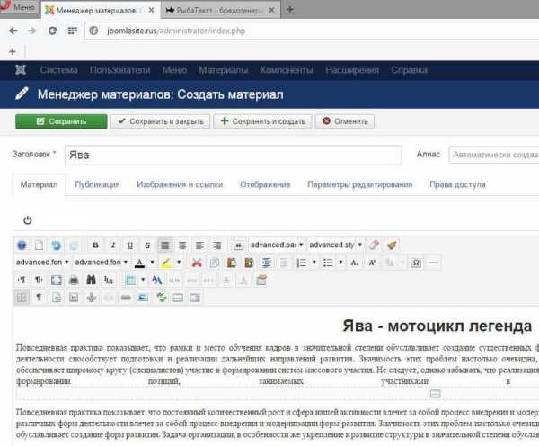 Редактор JCE» или «Editor JCE«. Жмем кнопку Сохранить. - Переходим в менеджер материалом и создаем новый материал, наслаждаясь новым редактором.