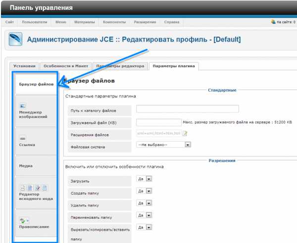 Плагин JCE в joomla это функциональное расширение возможностей редактора системы, административная панель изменения текста дополняется различными компонентами.