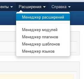 В административной панели выбираем «Расширения» и во всплывающем окне кликаем «Менеджер расширений».