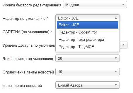 И в поле «Редактор по умолчанию» устанавливаем JCE